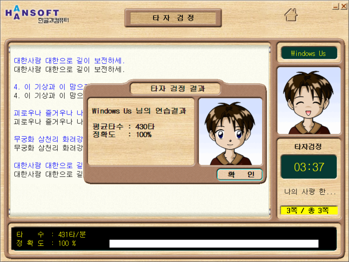 2023/09/01 애국가 450/100/3:40 왜 시간이 늘었는데 타수가 올랐죠? 5분에서 남은 시간이구나